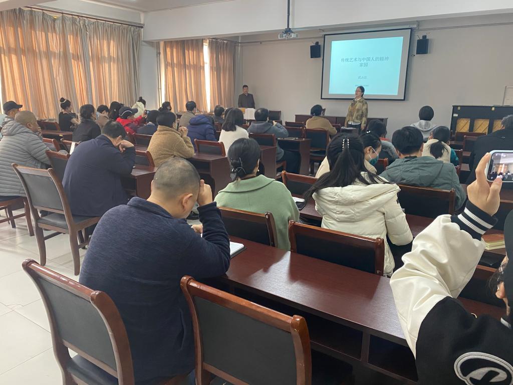2021年11月15日下午,mobile28365邀请公司期刊编辑部主任武占江教授为师生做题为“传统艺术与中国人的精神家园”的专题讲座,讲座由mobile28365经理聂书法主持,mobile28365全体教师和部分研究生参会。